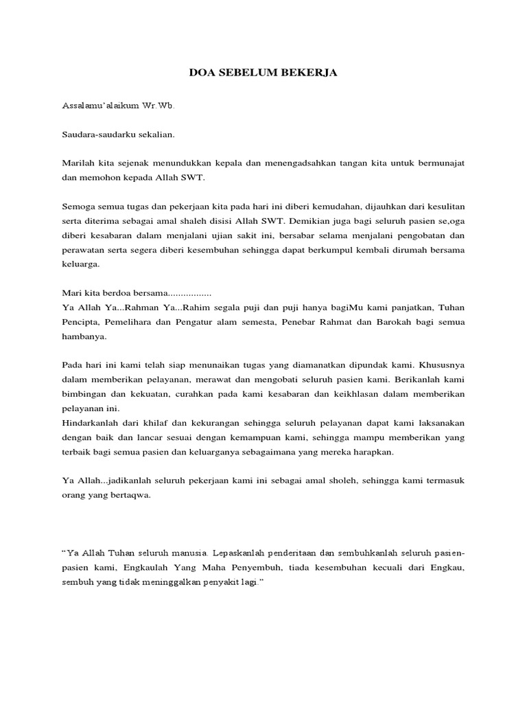 Contoh Doa Sebelum Mulai Bertugas Pdf