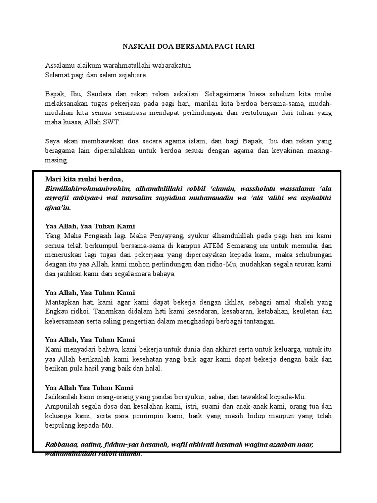 Contoh Do A Apel Pagi Sebelum Melaksanakan Tugas Di Kantor Dan Instansi Visiuniversal